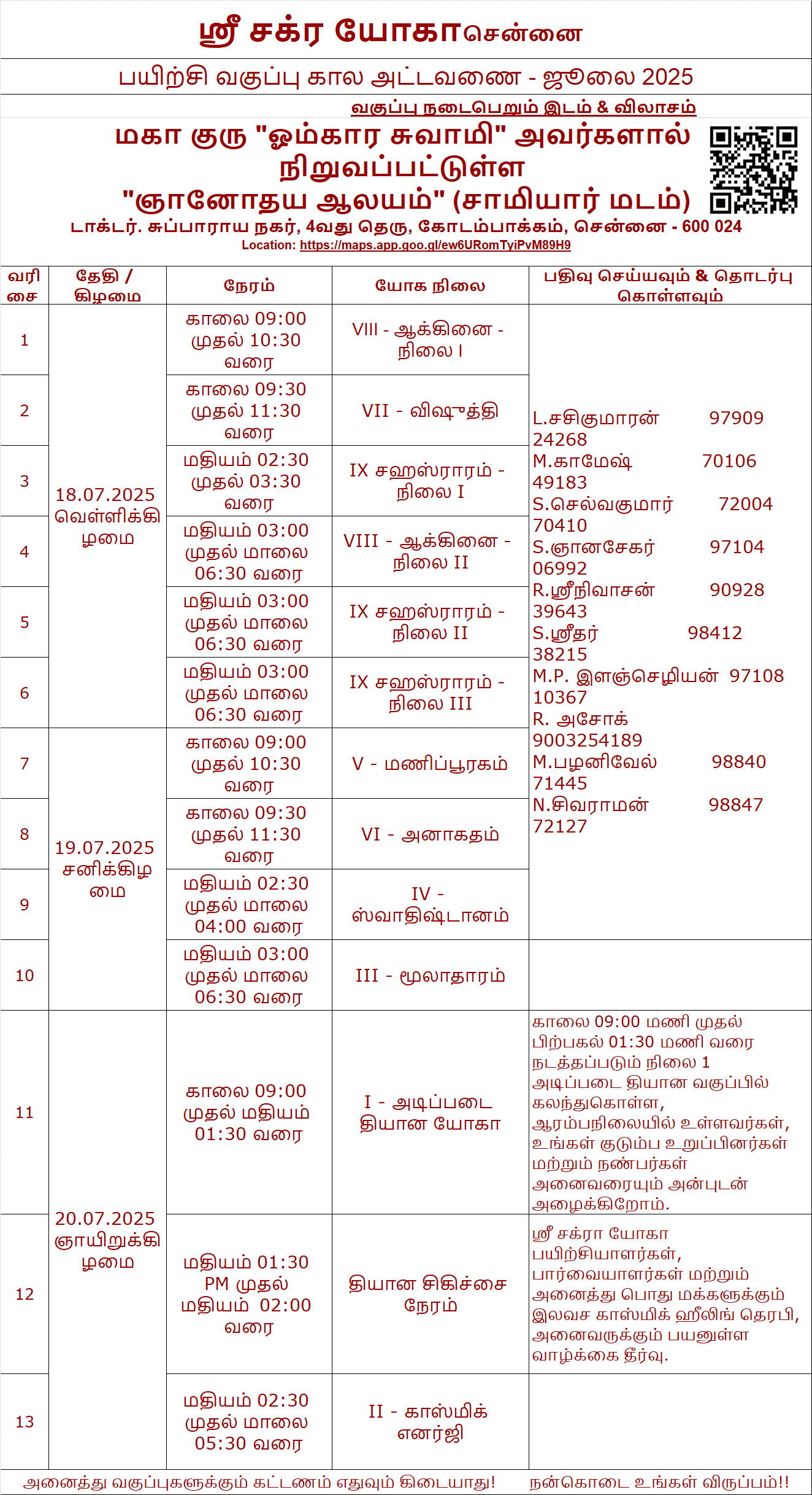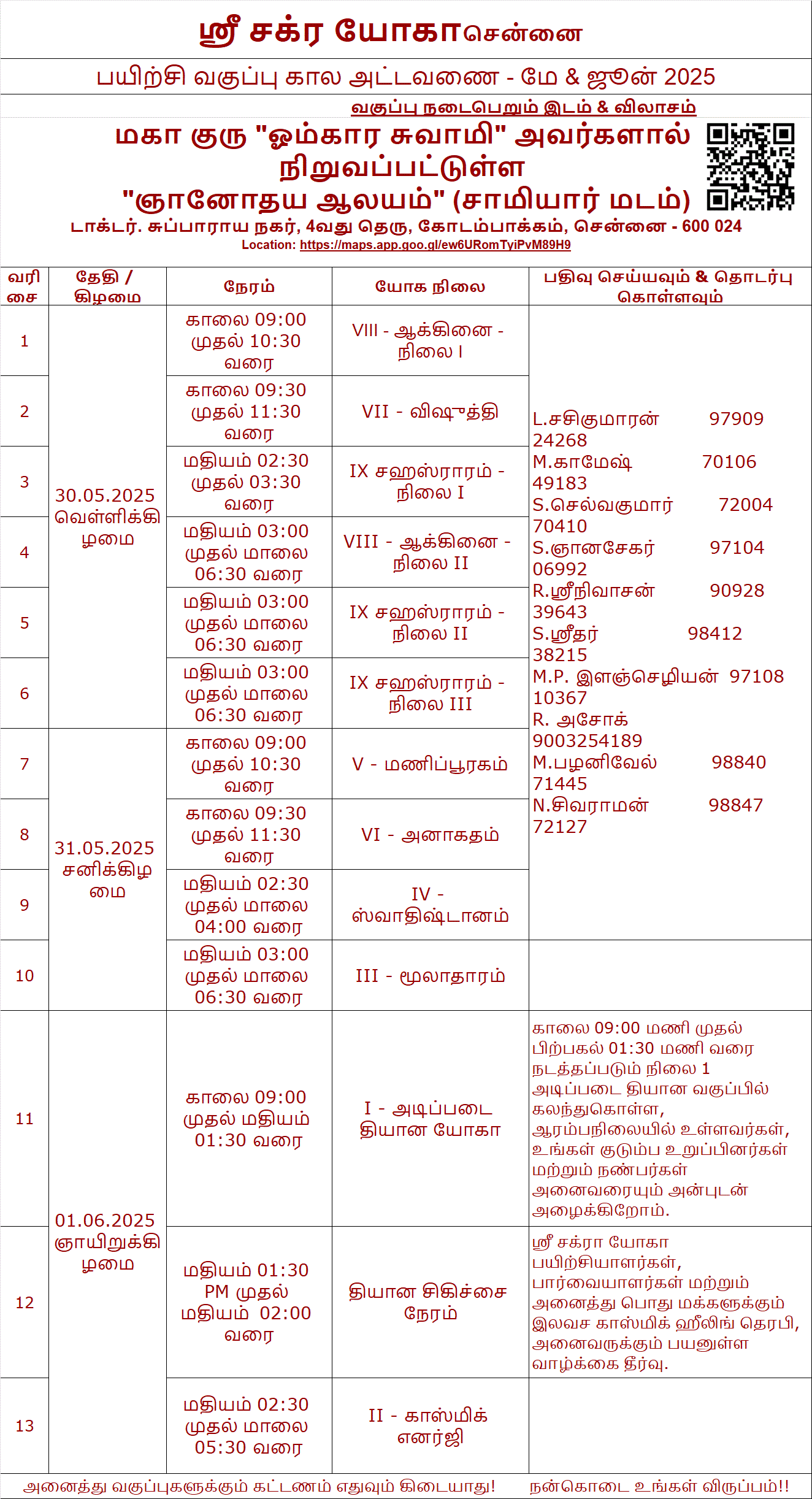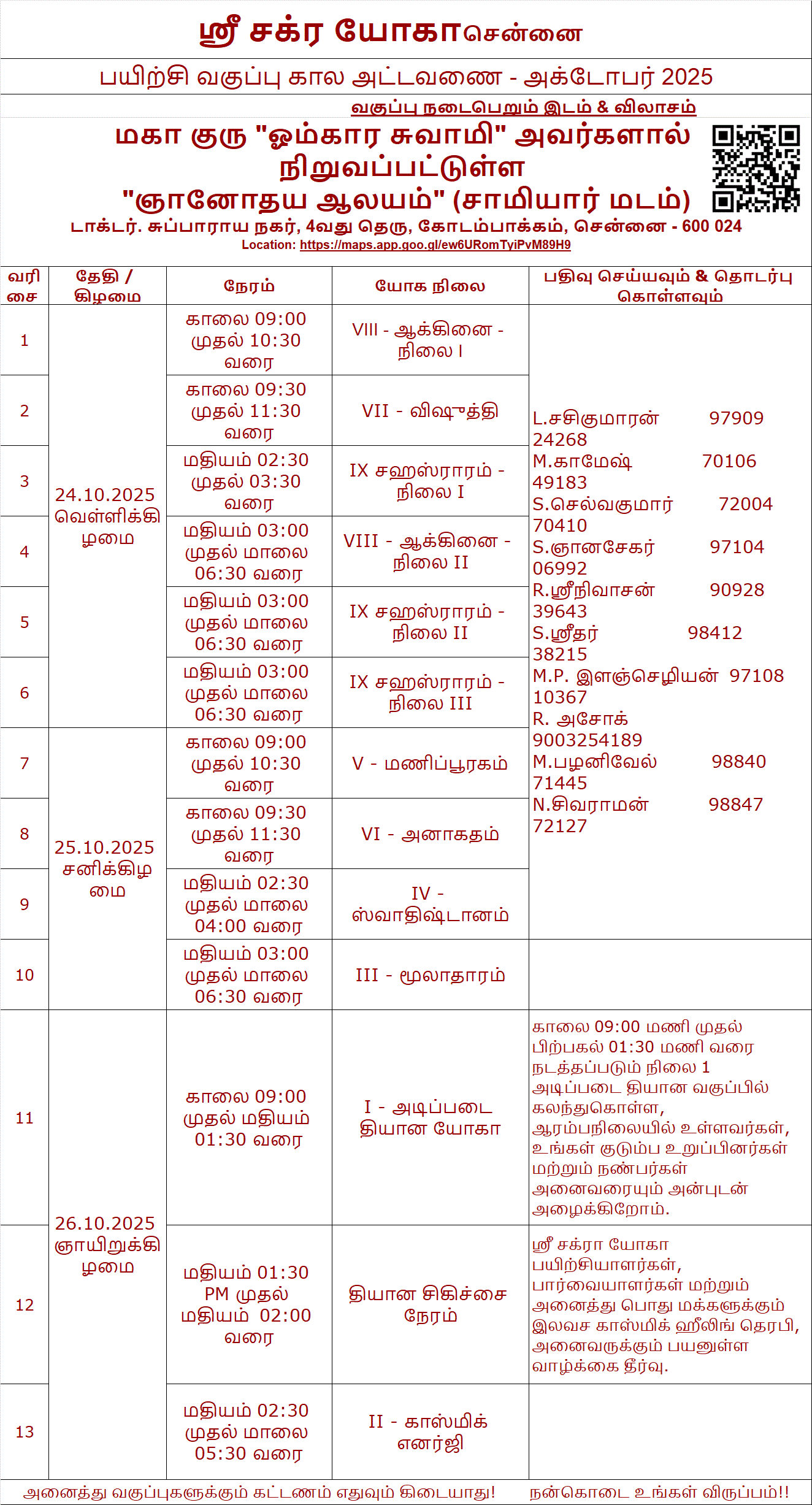 The one who got the mercy and blessings of the Divine, who belongs to the district of Namakkal is RAJA SUNTHARA SWAMY alias S.K.SUNTHARARAJAN is conducting Meditation class once in 48 days one by one.